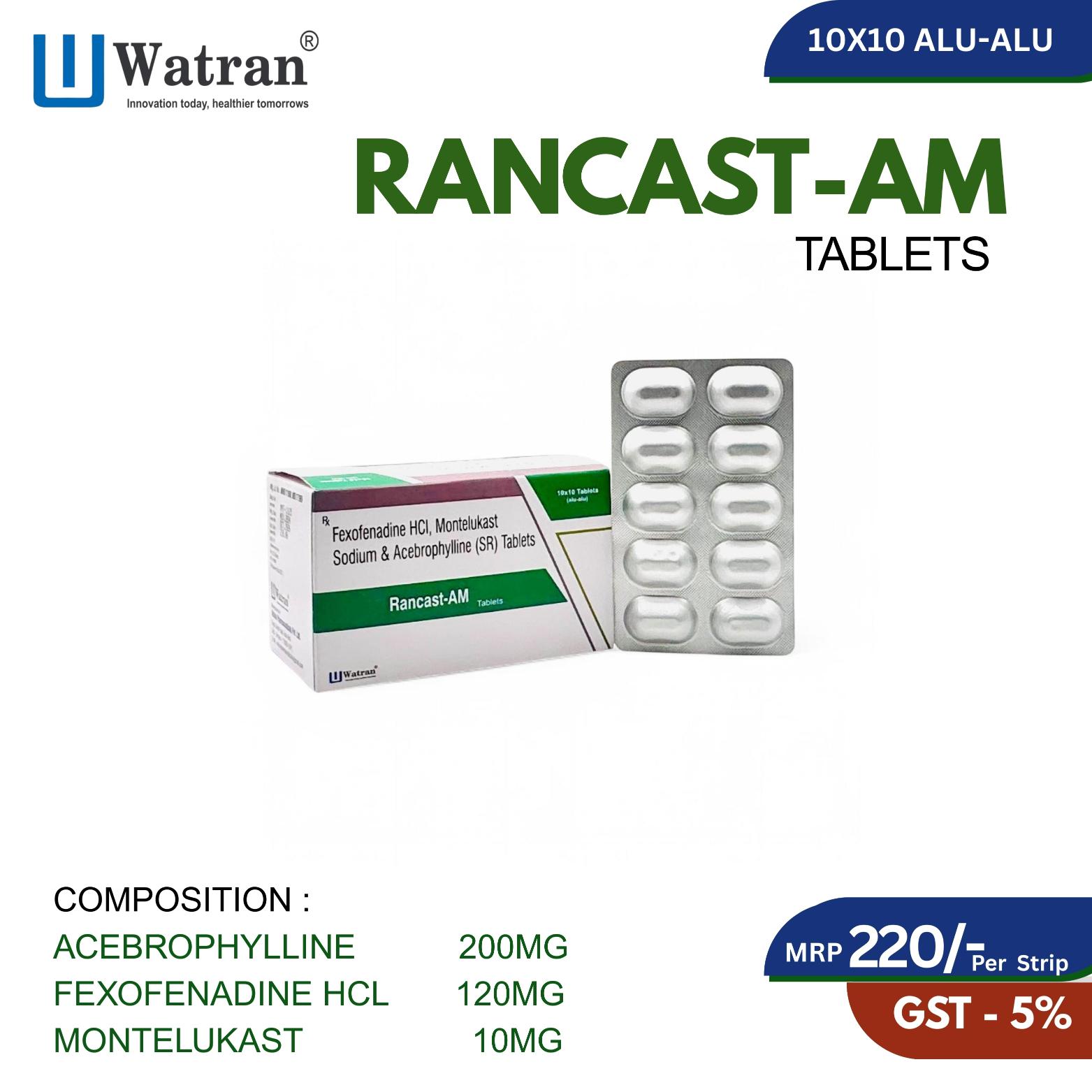 Composition : Acebrophylline 200mg + Fexofenadine Hcl 120mg + Montelukast 10mg